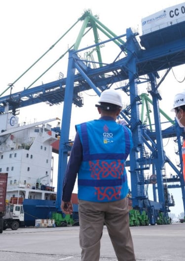 Layanan bongkar muat barang di pelabuhan dengan keamanan tinggi.